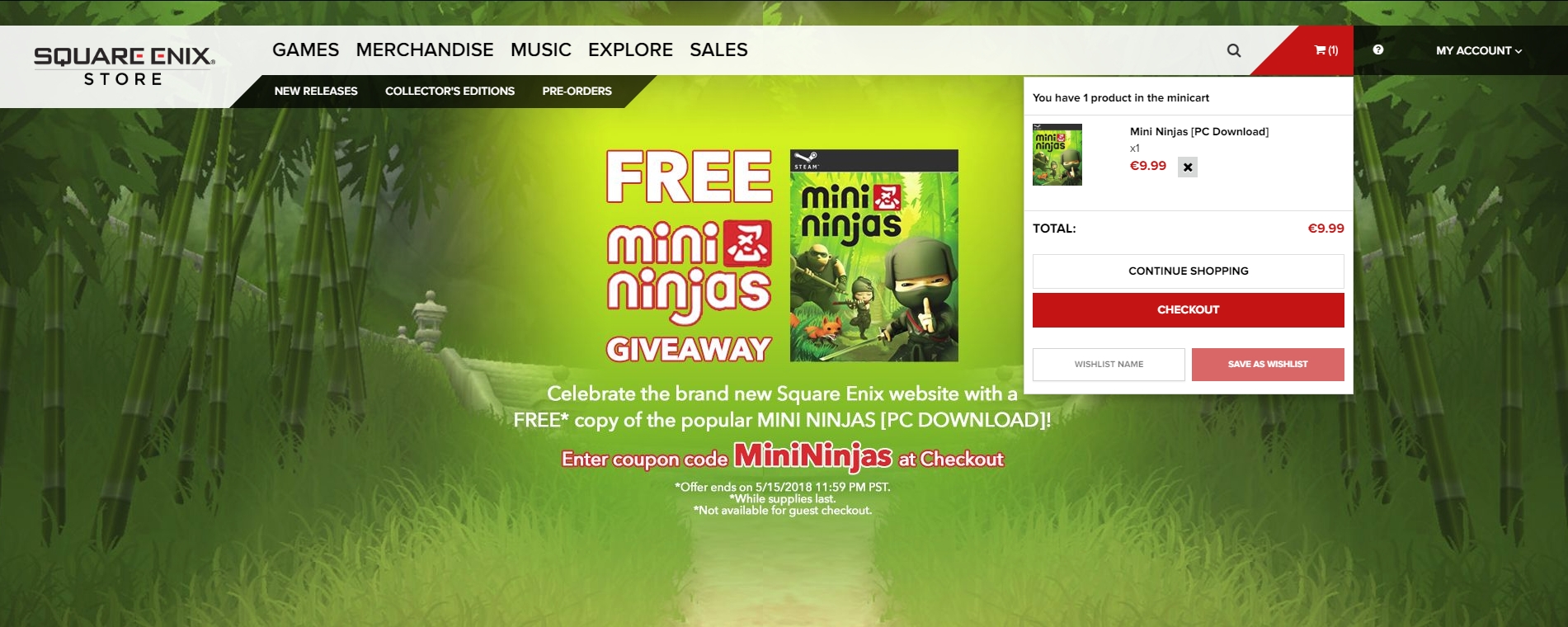 MINI NINJAS FREE VIA SQUARE ENIX WEBSTORE